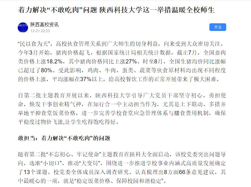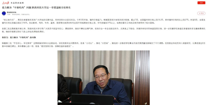 人民日報APP:著力解決“不敢吃肉”問題 陜西科技大學這一舉措溫暖全校師生