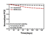 圖2.優化的DD(0.4mol%)的PSC和參考PSC用于環境,照明和熱穩定性關系曲線。