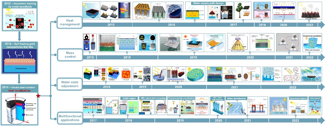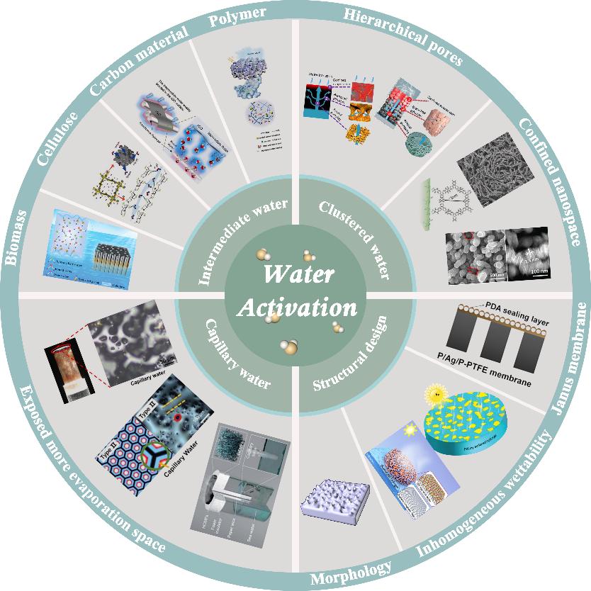 有鑒于此,王成兵教授團隊聯(lián)合浙江海洋大學徐興濤教授和澳大利亞昆士蘭大學Yusuke Yamauchi教授以“Water Activation in Solar-Powered Vapor Generation”為題在Advanced Materials發(fā)表了相關綜述論文。王成兵教授、徐興濤教授和Yusuke Yamauchi教授為論文通訊作者,碩士研究生衛(wèi)丹為論文第一作者。陜西科技大學為第一通訊單位。衛(wèi)丹為我校2021級碩士研究生,目前在Advanced Materials、AdvancedEnergyMaterials和GlobalChallenges上發(fā)表SCI論文3篇,授權(quán)國家發(fā)明專利1項,先后獲得中國國際互聯(lián)網(wǎng)+大學生創(chuàng)新創(chuàng)業(yè)大賽國家銅獎、中國研究生能源裝備創(chuàng)新設計大賽國家一等獎、“奧福環(huán)保”優(yōu)秀研究生等榮譽稱號。