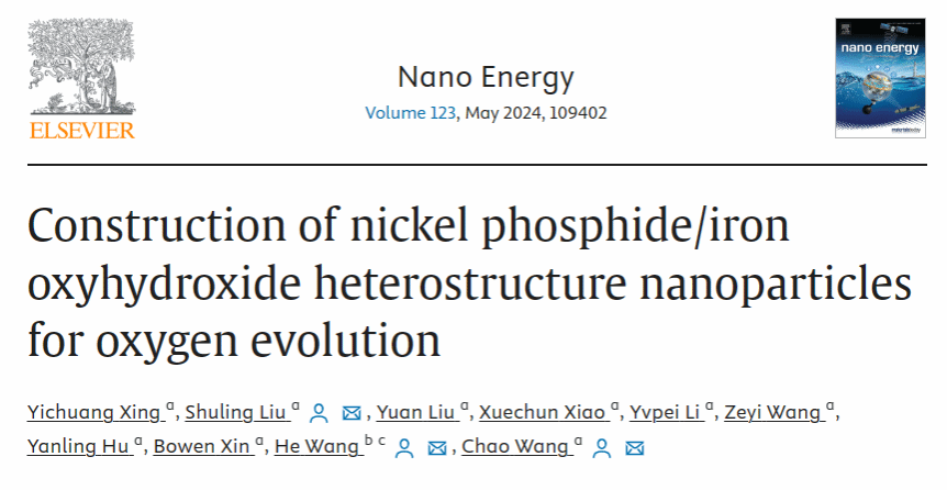 近日,我校化學(xué)與化工學(xué)院劉淑玲教授團(tuán)隊(duì)在電解水制氫領(lǐng)域得重要進(jìn)展,相關(guān)成果以“Construction of nickel phosphide/iron oxyhydroxide heterostructure nanoparticles for oxygen evolution”為題,發(fā)表在國(guó)際知名期刊Nano Energy(IF=17.6)上。我校碩士研究生邢一創(chuàng)為第一作者,劉淑玲教授、王超副教授、中科院山西煤化所王鶴助理研究員為論文共同通訊作者,陜西科技大學(xué)為第一通訊單位。