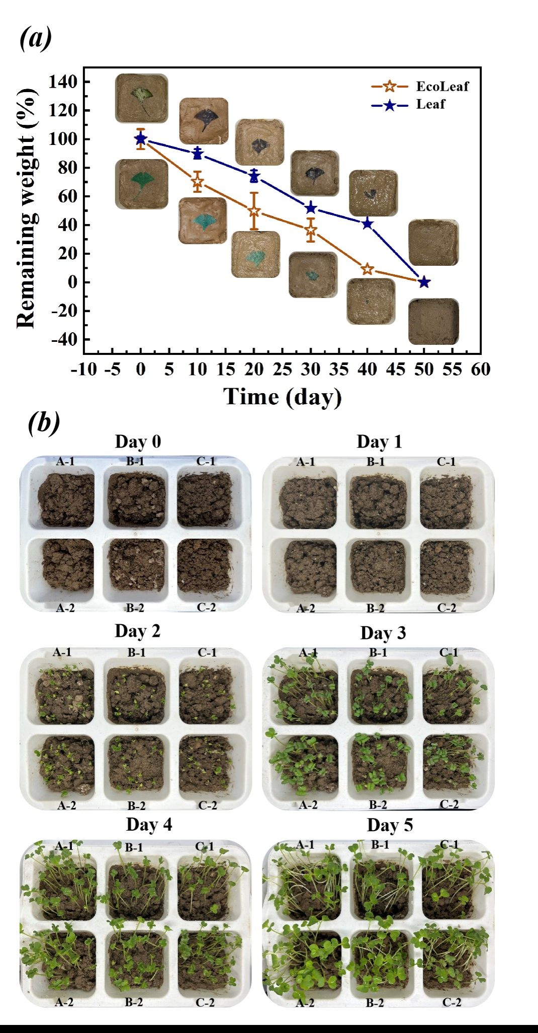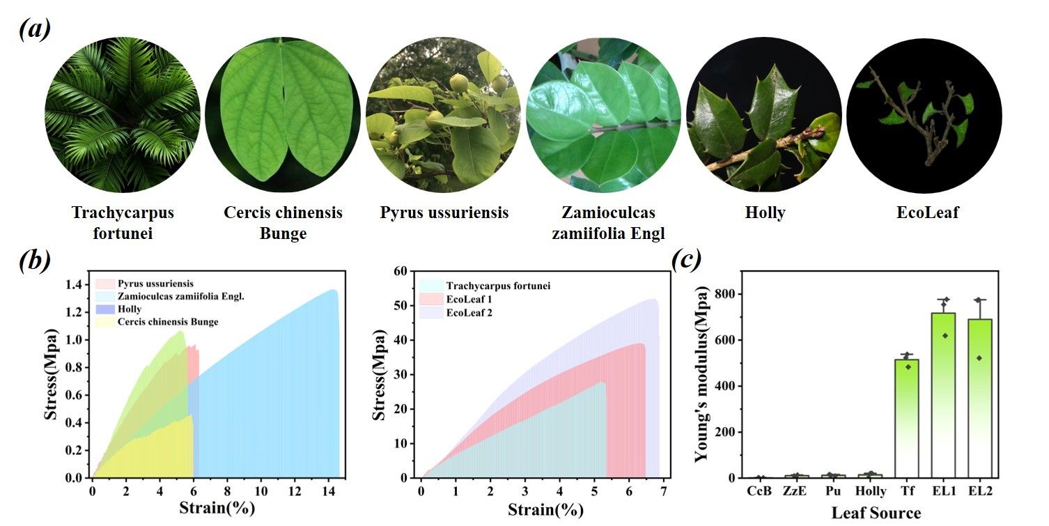 開發人工樹葉處理環境超載的CO2對于碳中和意義重大。近期,陜西科技大學輕工學院生物質與功能材料研究所(王學川教授團隊)與纖維新材料及廢棄物資源化利用團隊(張素風教授團隊)成員合作,制備了一種迄今為止最接近自然葉片的EcoLeaf。具體而言,該葉片以紙為基材,利用活性自由基聚合技術在其表面接枝構筑光響應聚合物涂層,與此同時將光合作用的關鍵固碳酶—碳酸酐酶原位包埋在其中(圖1)。在可見光照射下,光響應性交聯涂層結構發生變化,從而實現交聯網孔(仿葉片氣孔)的可控開合,進而實現載酶葉片對空氣中CO2固碳速率的調節(圖2-圖3)。此外,該Ecoleaf具有與天然葉片相似的機械性能(圖4),并可順利地參與生態系統降解與養分循環過程,實現“化作春泥更護花”的美好理想(圖5)。Ecoleaf中的固碳途徑具有較為靈活的可設計性,未來可為其它生物固碳途徑提供仿生的多功能平臺。該工作以“Arti?cial cellulosic leaf with adjustable enzymatic CO2 sequestration capability”為題發表在《Nature Communications》上(Nat Commun, 2024, 15(1): 4898)。陜西科技大學是本論文的唯一通訊單位,輕工學院碩士生杜晨曦為該論文的第一作者,朱興副教授與賀斌博士為該論文的共同通訊作者。該研究得到國家自然科學基金委、陜西省重點研發計劃、陜西省教育廳重點項目的支持。