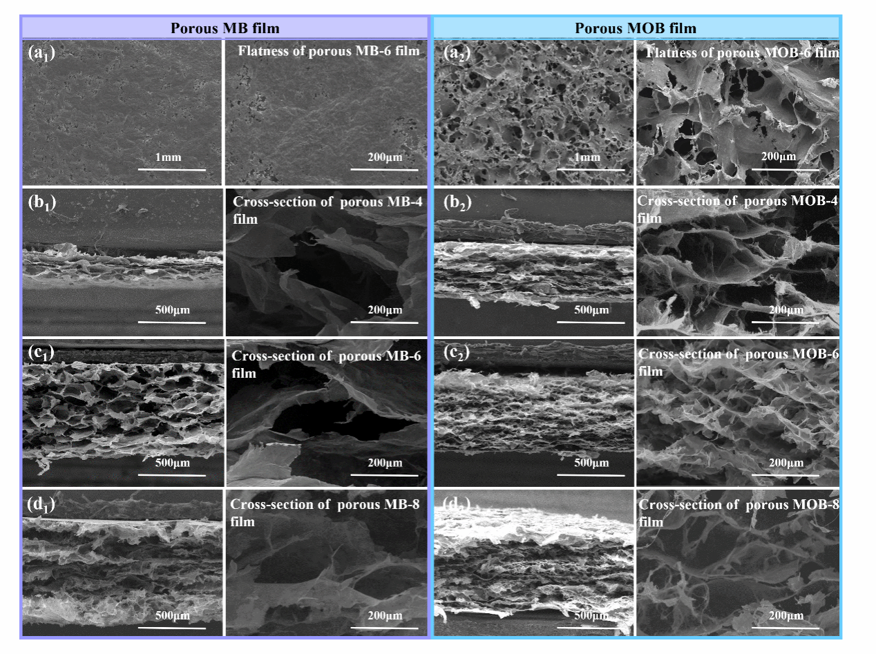 分子交聯與離子分子雙交聯多孔MXene膜的微觀形貌