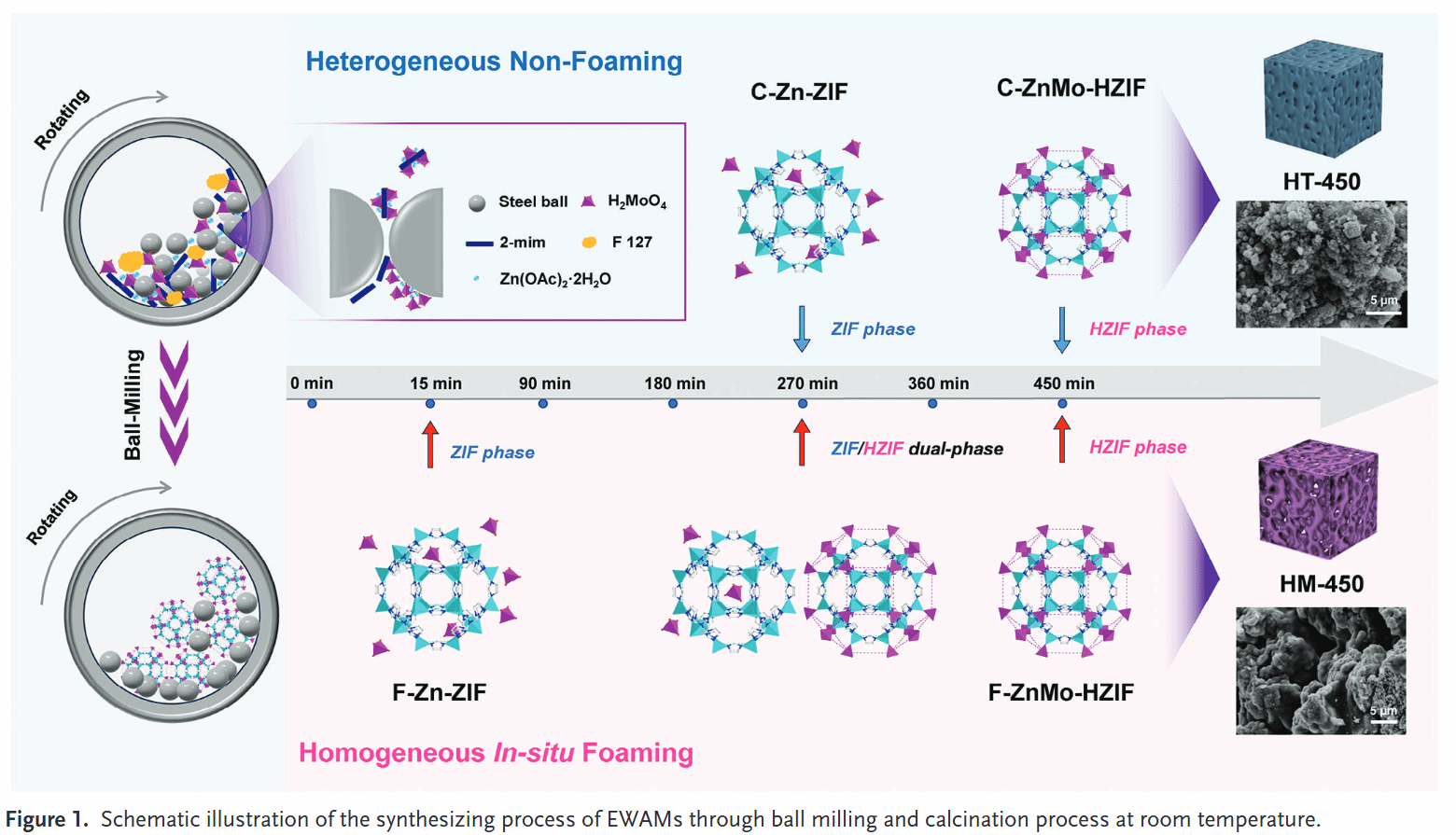 在室溫下通過(guò)球磨和煅燒工藝合成EWAMs的工藝示意圖