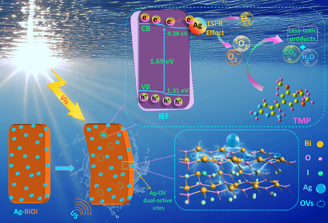 此外,利用銀負(fù)載鉍碘化物(Ag-BiOI)納米片提升三甲氧芐氨(TMP)降解性能。通過引入氧空位(OVs)和銀,顯著提高了催化劑的活性,60分鐘內(nèi)降解效率達(dá)到了97%。這一結(jié)果表明,氧空位和銀作為雙重活性位點(diǎn)在氧化自由基的生成中發(fā)揮了關(guān)鍵作用,從而促進(jìn)了TMP的高效降解。進(jìn)一步的研究評(píng)估了所合成的鉍基復(fù)合材料在實(shí)際廢水中的應(yīng)用效果。實(shí)驗(yàn)結(jié)果顯示,該材料在實(shí)際廢水中的催化降解性能顯著,表明其在復(fù)雜藥品廢水處理中的潛力。通過優(yōu)化催化劑濃度和反應(yīng)溫度等關(guān)鍵參數(shù),顯著提高了廢水中污染物的去除效率,為實(shí)際應(yīng)用中的抗生素污染治理提供了有效的技術(shù)支持。