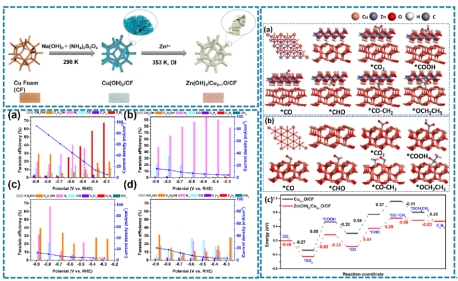 圖3. 電催化CO2還原為C2H6的性能和機理