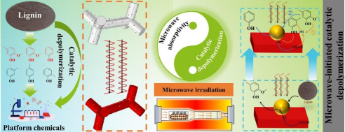 王文亮副教授等提出了一種微波響應(yīng)型催化劑,并成功用于克量級(jí)木質(zhì)素解聚蒸氣的微波輔助催化重整,為從資源豐富的木質(zhì)素中規(guī)模化獲取關(guān)鍵的酚類和芳香烴類平臺(tái)化合物提供了行之有效的途徑。該研究發(fā)表于國際頂級(jí)期刊Applied Catalysis B: Environmental和Chemical Engineering Journal。