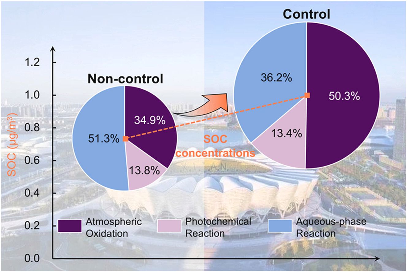 有機氣溶膠對全球氣候和人體健康具有重要影響,由于其復雜的來源和未知的二次形成過程,有效控制有機氣溶膠污染仍是巨大的挑戰。2021年第十四屆全運會在西安舉行,期間實施了嚴格的大氣污染排放管控政策,這為研究人為管控對大氣污染的影響提供了實驗契機。這項研究基于陜西科技大學大氣監測站觀測研究并結合氣象模型計算機模擬,探討了人為管控對大氣污染特征、來源及生成機制的影響。通過分離氣象因素的影響,發現由于一次污染源得到有效控制,關中城市群環境空氣質量明顯改善,有機氣溶膠濃度也降低了30%,但二次有機氣溶膠控制有限。這是由于管控措施削弱了大氣污染物對大氣氧化劑的滴定效應,促進了大氣氧化劑的生成,進而使得大氣氧化反應生成的二次有機氣溶膠增多。研究結果證明了當前大氣污染管控措施的有效性,但也強調了對于二次有機氣溶膠前驅物的控制仍需進一步加強以減緩大氣污染。