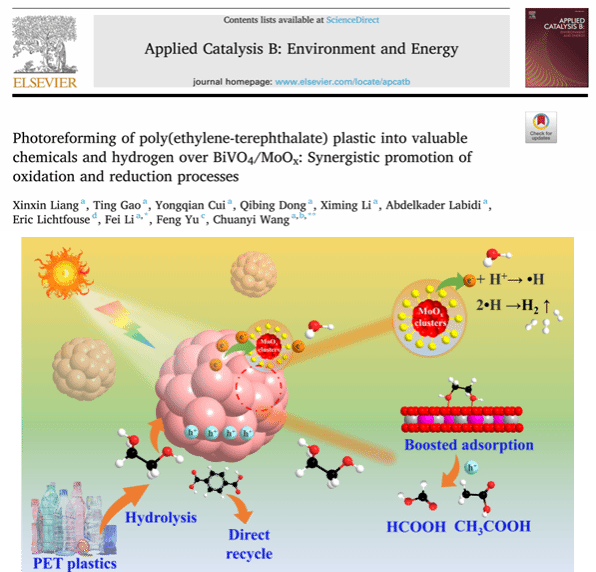 近期,陜西科技大學大學特聘教授王傳義老師團隊在光催化廢棄塑料、廢棄生物質的高值化轉化方面取得重要進展。相關成果在Applied Catalysis B: Environment and Energy (IF=20.2)期刊發表。
