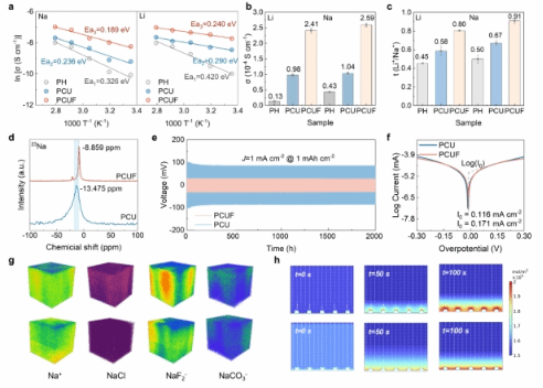 圖2:PCUF電解質的離子傳輸性能和SEI性能表征