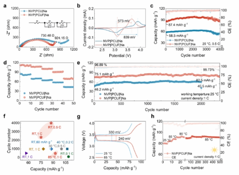 圖3:基于PCUF電解質準固態鈉金屬扣式電池性能