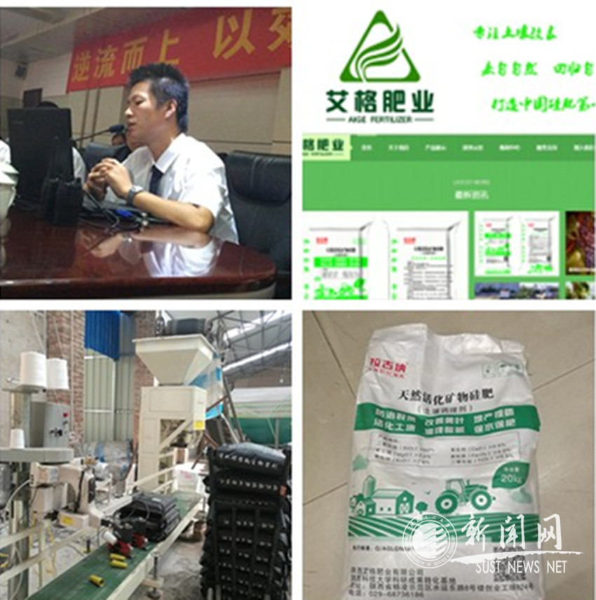 團(tuán)隊(duì)2015級研究生宋建波(學(xué)號:1502002,專業(yè):材料科學(xué)與工程)經(jīng)過兩年多的試驗(yàn)和探索,通過整合團(tuán)隊(duì)及自身的技術(shù)和優(yōu)勢資源,2017年在國家級科技企業(yè)孵化器楊凌示范區(qū)創(chuàng)新創(chuàng)業(yè)園,注冊企業(yè):陜西艾格肥業(yè)有限公司,目前企業(yè)在陜西黃龍,陜西大荔已建成兩條年產(chǎn)2萬噸硅肥及土壤改良劑生產(chǎn)線,2017年底,企業(yè)產(chǎn)值1400余萬元。