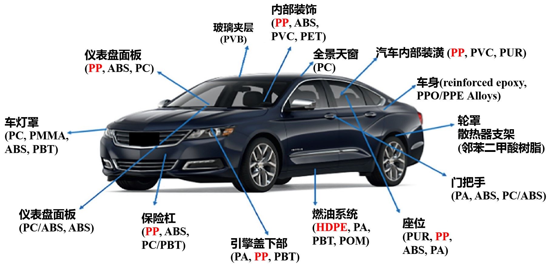 近年來,中國汽車工業(yè)快速發(fā)展,整車出口連續(xù)多年呈增長態(tài)勢,其中2023年全年燃油和新能源汽車分別出口370.7萬輛和120.3萬輛。車用塑料使用量占整車質(zhì)量的10%–15%,聚丙烯、高密度聚乙烯、聚丙乙烯等石油基聚合物(塑料制品)在汽車內(nèi)外裝飾、機(jī)械構(gòu)件上已被廣泛使用。為實(shí)現(xiàn)2030年碳排放減少55%的目標(biāo),歐盟等國家和地區(qū)開始試運(yùn)行碳邊界調(diào)整機(jī)制,對石油基聚合物(塑料制品)等征收碳邊境調(diào)節(jié)稅(簡稱碳稅),這將對中國汽車整車及塑料制品的出口產(chǎn)生巨大的負(fù)面影響。