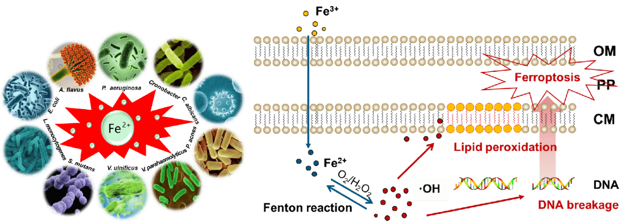 鐵基抗菌劑的廣譜殺菌機制示意圖