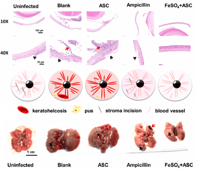 鐵基抗菌劑在小鼠細菌性角膜炎模型中表現出卓越治療效果,既治愈被感染的小鼠眼球傷口,又有效阻止肺部感染