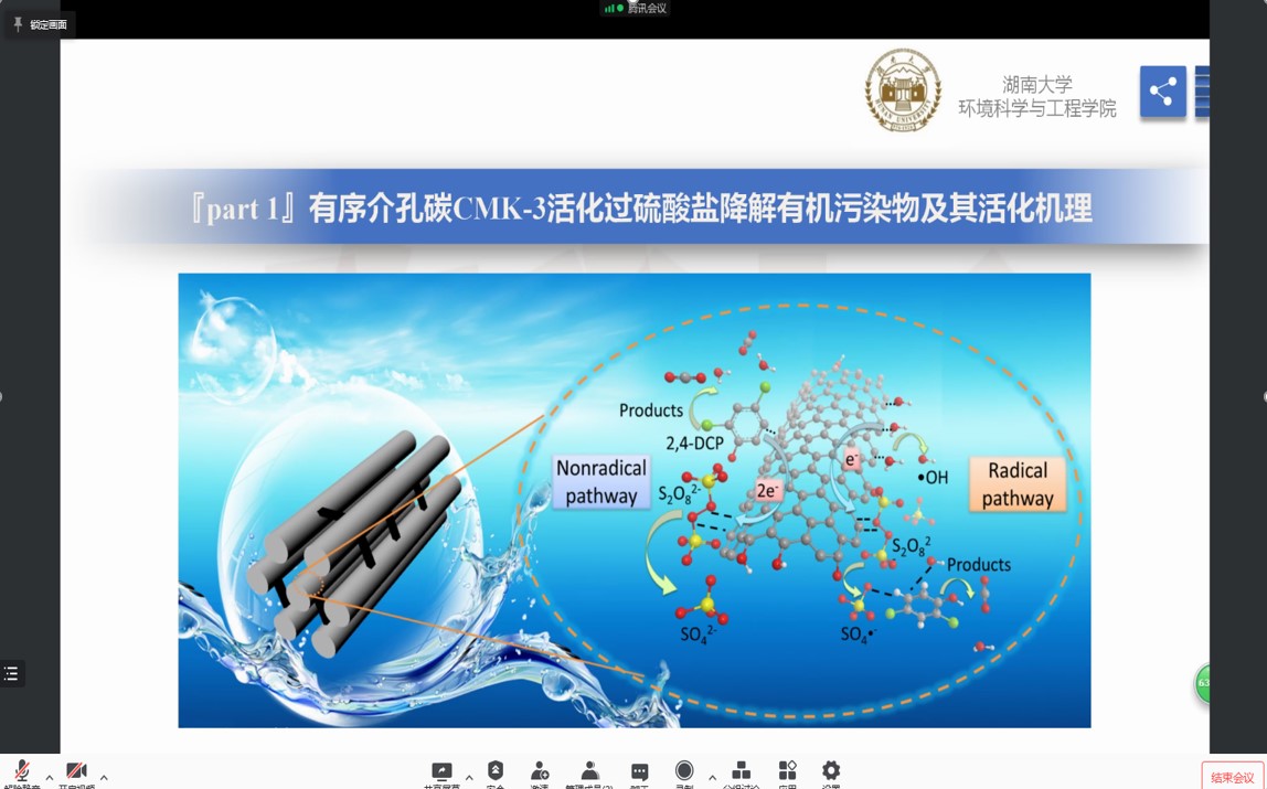 1月10日上午,應輕工科學與工程學院和研究生院邀請,湖南大學環境學院王佳佳博士做客我院“未央導師論壇”,并作了題為“碳基材料活化過硫酸鹽技術在水處理中的應用研究”的報告。報告由輕工學院副院長劉國棟教授主持,學院相關教師和研究生參加了本次報告會。受疫情影響,本次報告采取線上會議方式進行。