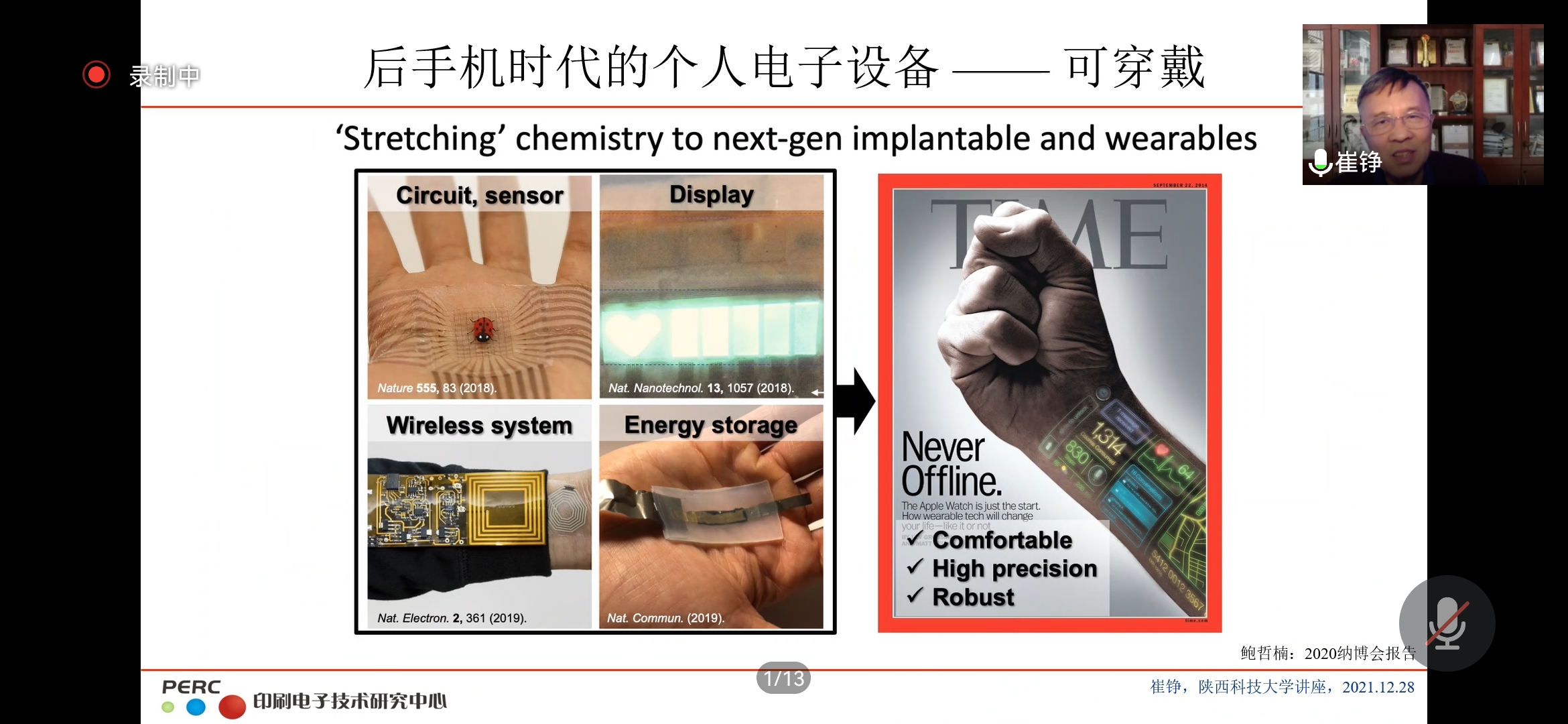 崔錚,中科院蘇州納米技術與納米仿生研究所研究員,2009年入選國家級人才計劃,加入中科院蘇州納米所,創建了國內首個印刷電子技術研究中心。主要從事電子墨水合成、印刷電子工藝與裝備開發,以及印刷電子應用研究,包括印刷柔性光伏、印刷薄膜晶體管、印刷發光與顯示、印刷柔性可拉伸可穿戴電子等。已發表論文280余篇,出版微納米加工技術中英文專著7部,出版印刷電子技術中英文專著4部。主導研發的混合印刷金屬網柵柔性透明導電膜技術已實現大規模產業化并成功應用于觸摸屏產品,該項技術的核心專利獲2014年中國專利金獎。
