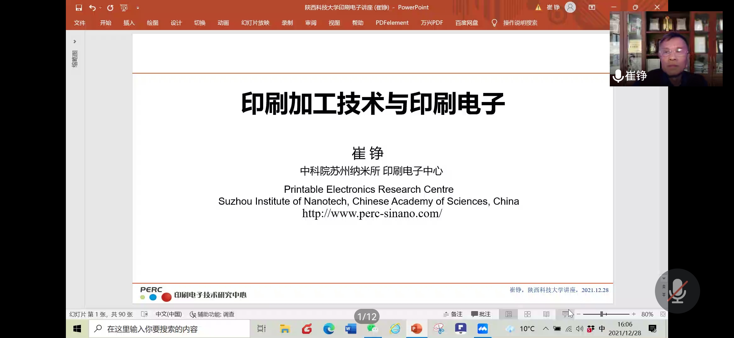 12月28日下午,應我校輕工科學與工程學院、科技處及前沿院邀請,中科院蘇州納米技術與納米仿生研究所崔錚研究員做客我校“前沿科學報告”,作了題為“印刷加工技術與印刷電子”的線上學術報告。報告由輕工學院副院長劉國棟主持,學院部分教師、相關專業研究生及本科生聆聽了本次報告。