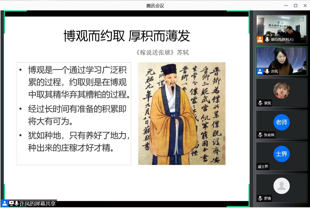 國(guó)家自然基金申報(bào)十分重要,選題的科學(xué)意義、應(yīng)用前景,學(xué)術(shù)思想的創(chuàng)新性都是高??蒲心芰Φ募畜w現(xiàn),推動(dòng)著國(guó)家的科學(xué)發(fā)展,許鳳教授提到“七分工作,三分寫作”,希望大家多多關(guān)注研究?jī)?nèi)容本身。