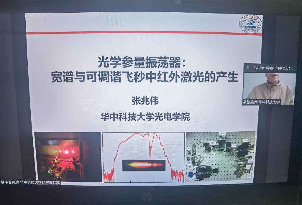12月14日下午,應電子信息與人工智能學院與科技處、前沿院邀請,華中科技大學光學與電子信息學院張兆偉教授作了題為“飛秒光學參量振蕩器及寬譜中紅外激光光源的產生”的前沿科學報告。電子科學與技術方向的教師和研究生參加了此次報告,本次報告會由電智學院院長助理孫連山主持。因疫情影響,講座采用線上線下相結合方式。