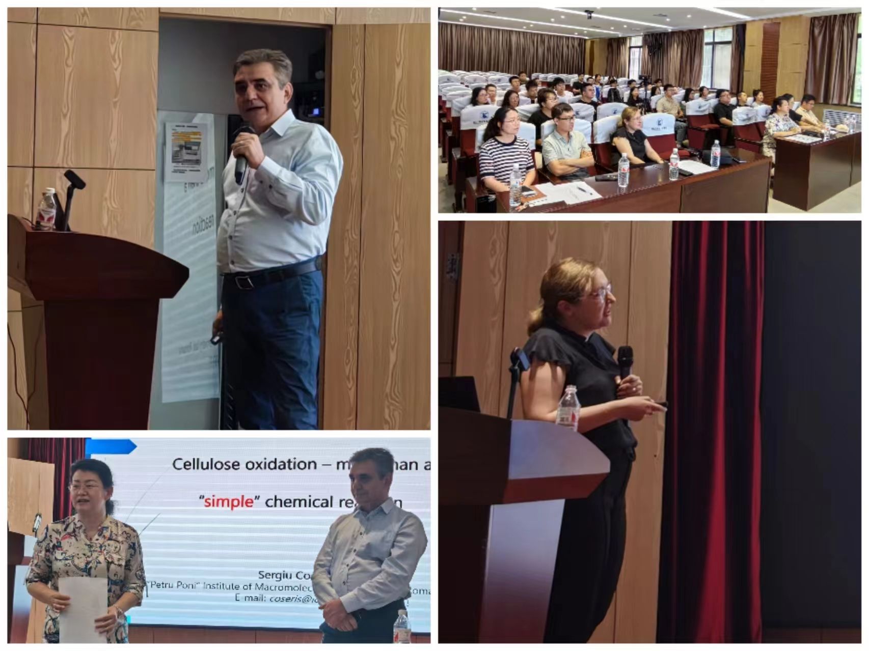 7月10日,應我校輕工科學與工程學院(柔性電子學院)、國際合作與交流處、科技處邀請,羅馬尼亞科學院皮特魯-龐尼高分子研究所 Sergiu Coseri 教授和Andreea Laura Scutaru研究員做客我校“前沿科學報告”和“未央導師論壇”,并作了題為“Cellulose oxidation – more than a “simple” chemical reaction”和“A journey from Romania beauty to the beauty of polymer-based materials used in photocatalytic applications or as fluorescent sensors”的報告,報告會由國際處處長張素風主持,學院相關教師及研究生參加了此次報告會。