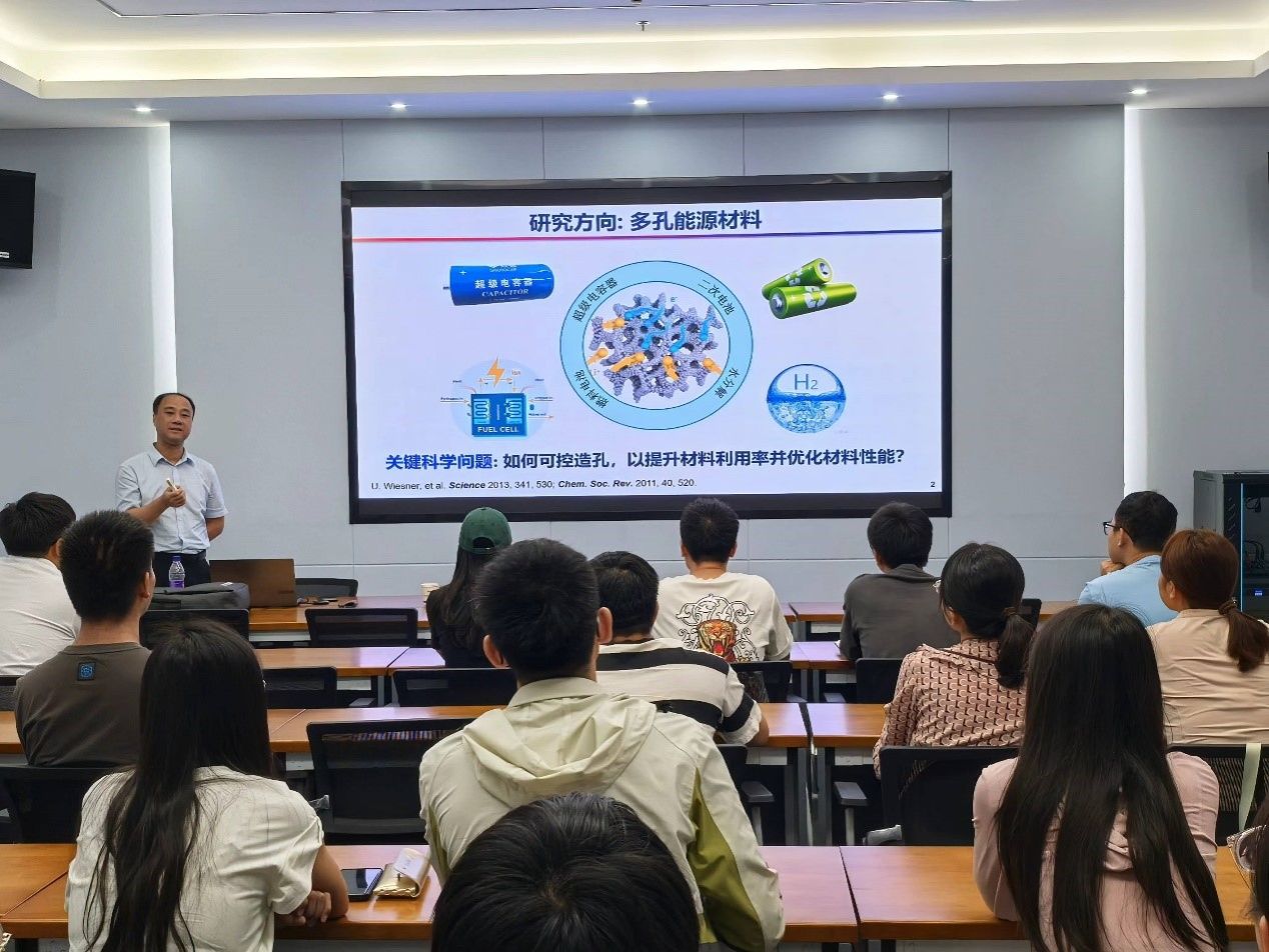 光電功能材料是芯片、能源存儲與轉化等國家重大科技發展目標領域的核心材料,其主要研究目標之一是獲得材料的構效關系和實現性能的優化。為此,實現材料的有序化是必要條件之一。在報告中麥亦勇教授詳細介紹了雙連續結構多孔材料的制備、結構特性、表征及其在能源存儲與轉化等光電領域中的應用。與會師生熱情的與麥亦勇教授進行了交流探討,本次學術交流活動圓滿成功。