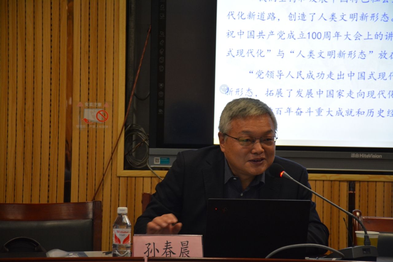 孫春晨研究員緊緊圍繞“中國式現代化與人類文明新形態”這一主題,從關于中國式現代化與人類文明新形態的重要論述、中國式現代化與人類文明新形態的密切關聯、創造人類文明新形態是中國式現代化的本質要求、建立在“兩個結合”基礎上的人類文明新形態等四個方面展開系統闡釋。最后,對師生感興趣的問題進行了解答并提出建議。