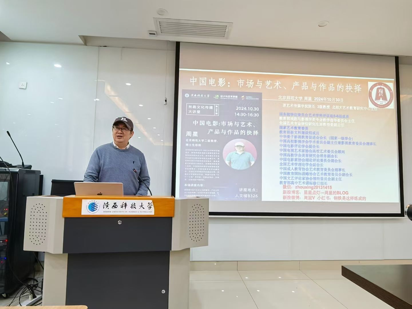 10月30日下午,應我校設計與藝術學院、科技處及前沿院邀請,北京師范大學周星教授做客我校“前沿科學報告”,作了題為“中國電影:市場與藝術、產品與作品的抉擇”的學術報告。報告會由設藝學院副院長吉平主持,設藝學院黨委書記劉和林及相關專業師生參加了此次報告會。