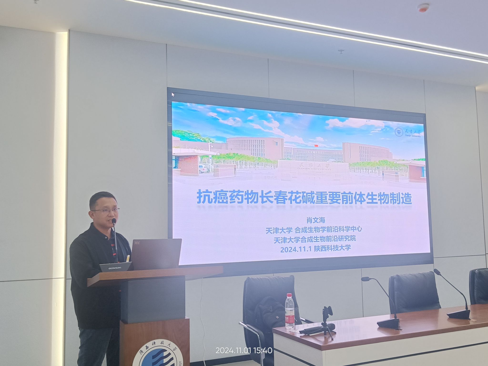 今日,應(yīng)食品科學(xué)與工程學(xué)院(生物與醫(yī)藥學(xué)院)邀請,天津大學(xué)肖文海教授作了題為“抗癌藥物長春花堿重要前體生物制造”的學(xué)術(shù)報告。食品學(xué)院部分教師和研究生代表參加本次報告會,報告會由食品學(xué)院副院長劉寧主持。