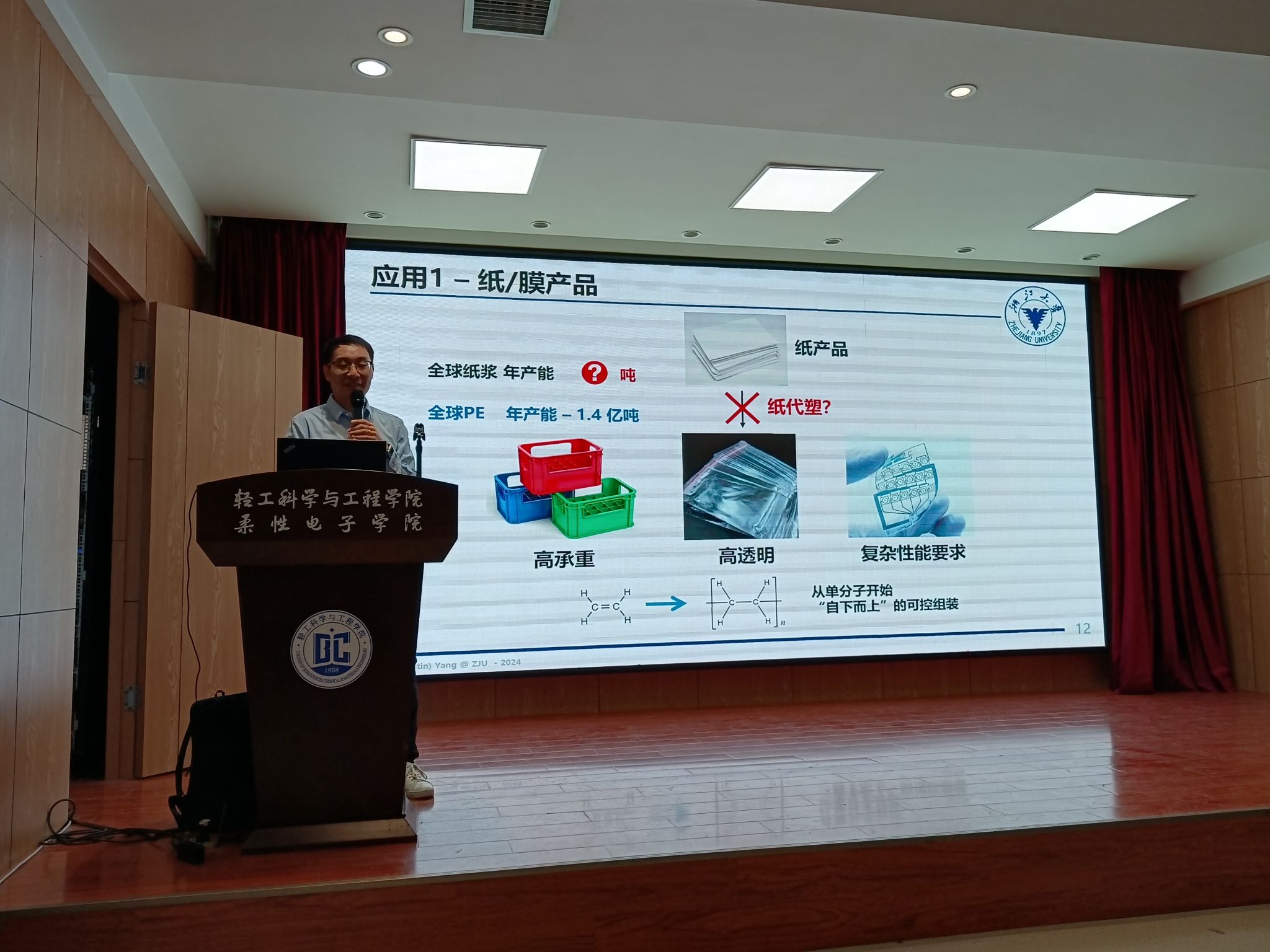 為促進優秀科研成果的交流,拓寬學生的學術視野,創造學術交流機會,應我校輕工科學與工程學院(柔性電子學院)、科技處及前沿院邀請,2024年12月5日上午,浙江大學楊軒研究員在我校輕工學院學術報告廳,做了題為“纖維素納米材料的綠色制備與應用”的前沿科學報告。報告會由輕工學院張雷副教授主持,輕工學院相關師生參加了此次報告會。
