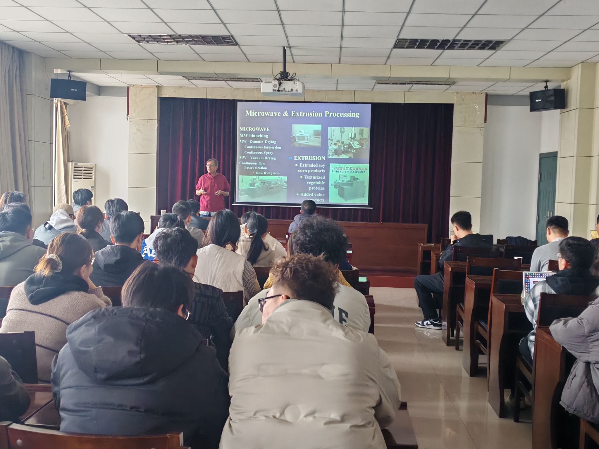 報告會上,Ramaswamy教授首先介紹了微波技術的加熱原理、主要裝備及應用范圍,包括滅菌、干燥、提取等,隨后分享了其團隊在新型微波技術裝備(微波-熱風、微波-真空、微波-歐姆)方面的突破性成果,探討了微波加熱安全性、有效性及工業化的應用,最后指出微波技術作為一種新型物理加熱方法,在采后農產品熱處理應用中具有潛在優勢和廣泛應用前景,同時也提出當前農產品微波加工存在的問題和未來的研究方向。報告會后,Ramaswamy教授與參會師生進行了深入的交流,討論了微波非熱效應提高措施及在工業上的應用潛力等。此次報告內容全面,對進一步促進國際學術交流和合作,提高科研國際化視野具有重要意義。