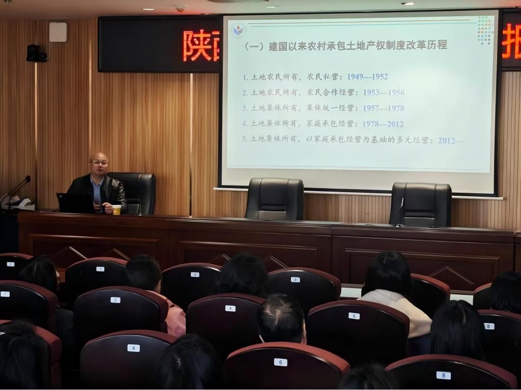 肖衛東教授在報告中首先介紹了建國以來農村土地制度改革歷程,分析了第二輪土地延包試點中存在的主要問題,講解了了《中共中央國務院關于保持土地承包關系穩定并長久不變的意見》,并基于新質生產力的基本內涵,提出了農業新質生產力的內涵及重要特征,從制度基礎、要素配置、農業組織創新和產業深度轉型升級四個維度,構建了農地“三權”分置與農業新質生產力發展的研究框架。肖衛東教授還就如何發展農業新質生產力,從頂層設計、科研選題、應用場景等方面提出了建議。