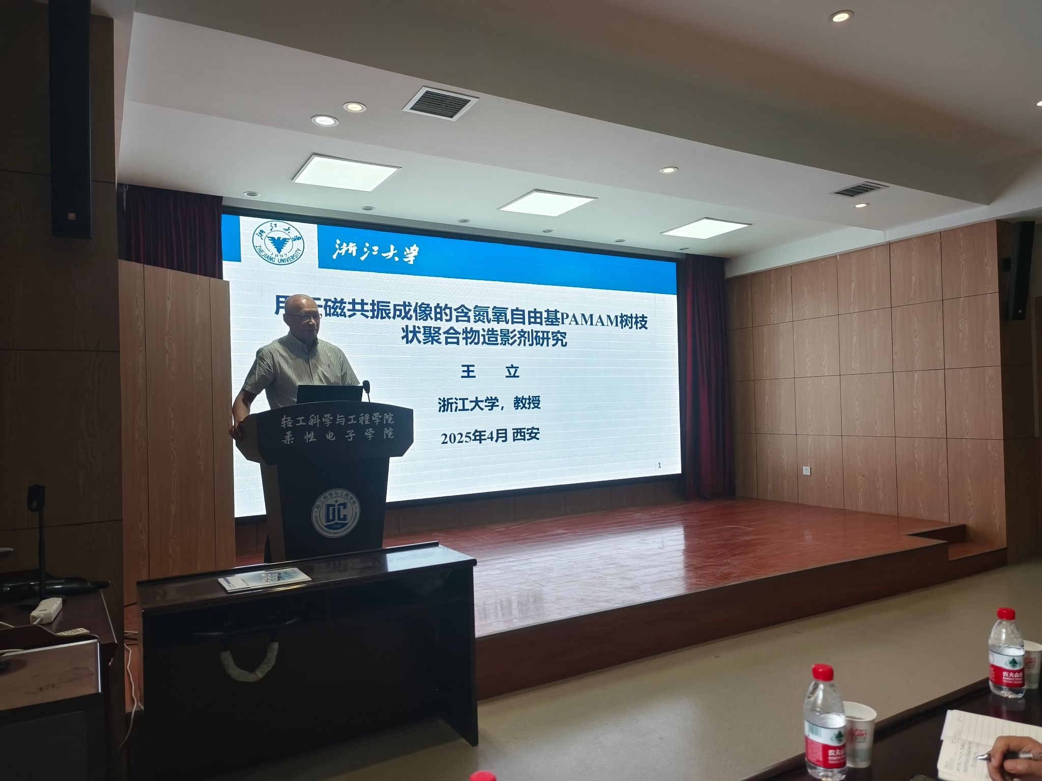 近日,應我校輕工科學與工程學院(柔性電子學院)、科技處及前沿院邀請,浙江大學求是特聘教授、俄羅斯工程院外籍院士、俄羅斯宇航科學院院士、英國皇家化學會會士王立教授做客我校“前沿科學報告”,并做了題為《用于磁共振成像的含氮氧自由基 PAMAM 樹枝狀聚合物造影劑研究》的學術報告。此次報告吸引了眾多師生到場聆聽,現場學術氛圍濃厚。