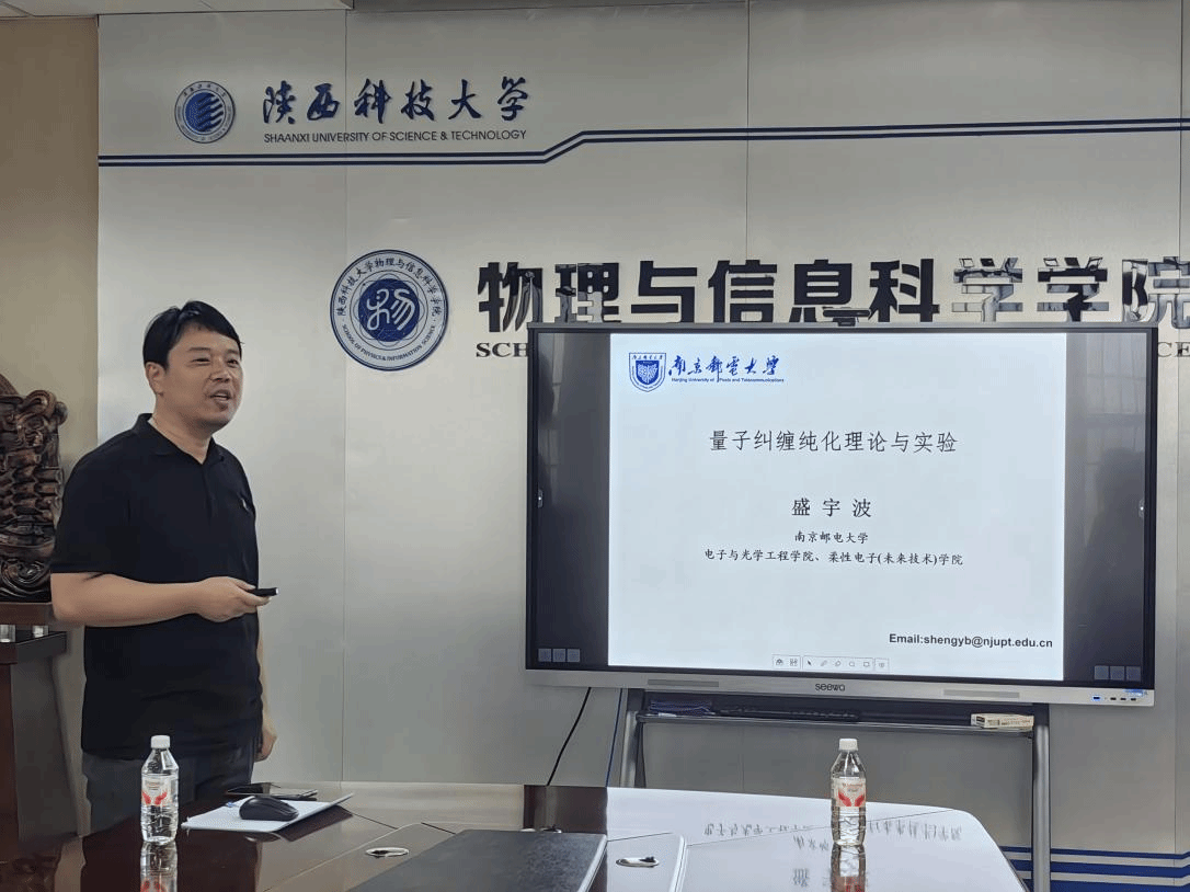 7月7日上午,應物理學院、科技處及前沿院邀請,南京郵電大學盛宇波教授做客我校“前沿科學報告”,在理科樓441做題為“量子糾纏純化理論與實驗進展”的學術報告。報告會由物理學院院長劉建科主持,相關專業教師、研究生參加報告會。