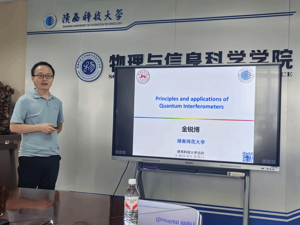 7月7日上午,應物理學院、研究生院邀請,湖南師范大學金銳博教授做客我校“未央導師論壇”系列學術報告,在理科樓441做了題為“量子干涉儀的原理與應用”的學術報告。報告會由物理學院院長劉建科主持,相關專業教師、研究生參加報告會。